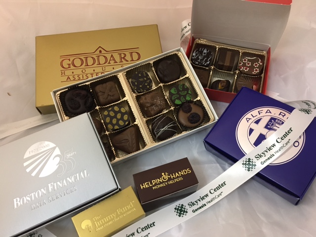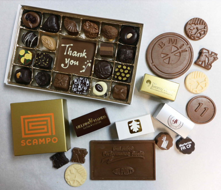 Create a custom gift box with your logo or a custom chocolate piece to replicate your logo.